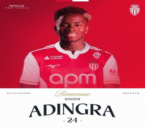 官方新闻,摩纳哥租借签下桑德兰先锋阿丁格拉,含买断权。