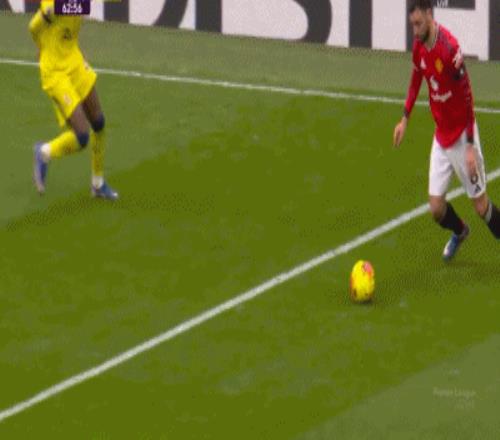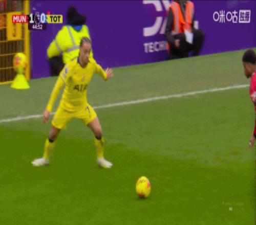第45分钟,阿马德放倒西蒙斯,吃到黄牌