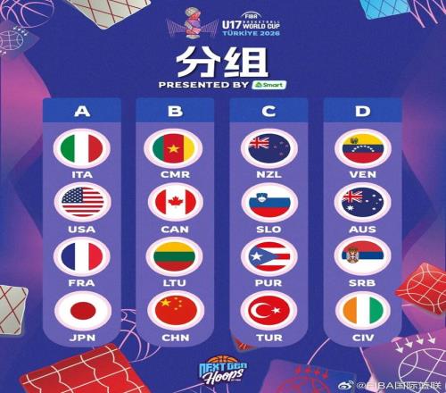克日,2026FIBAU17天下杯抽签效果出炉,中国队和 立陶宛队、加拿大队、喀麦隆队分在B组,此前相同班底获得U16亚洲杯亚军。
