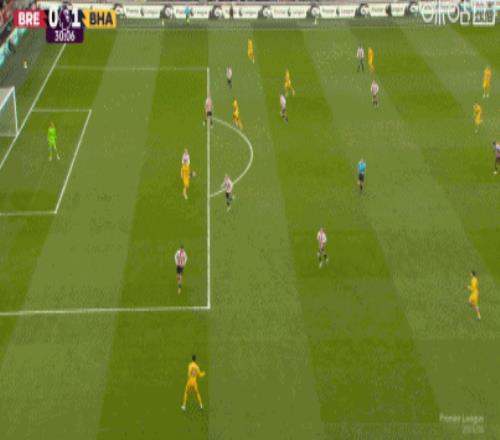 第30分钟 ,卡迪奥卢远射中框 ,迭戈-戈麦斯补射破门 ,布莱顿1-0!