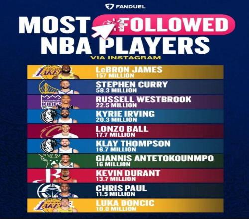 威少、欧文、球哥排3-5 ,克莱、字母哥、KD、保罗、东契奇也都进了前十 ,粉丝数不但代表人气 ,也是影响力的体现 ,咱就是说老詹这现役传奇的招呼力 ,真的没人能打啊....