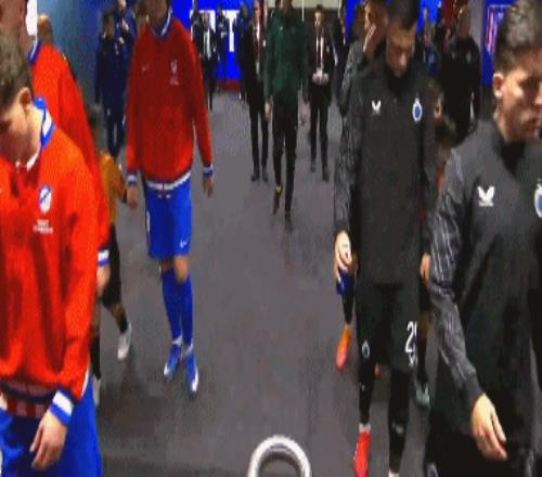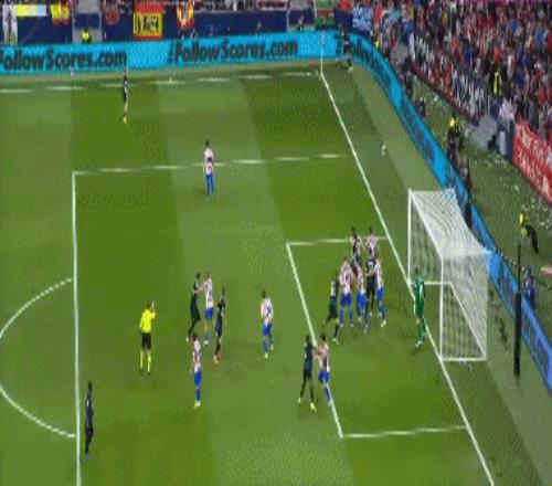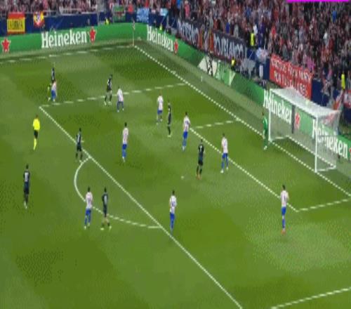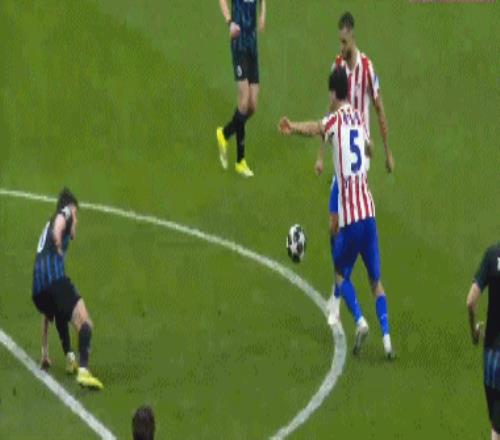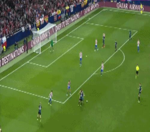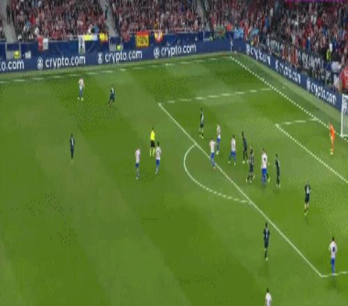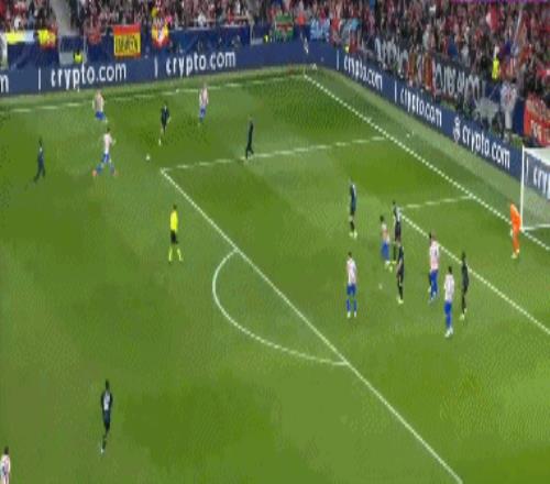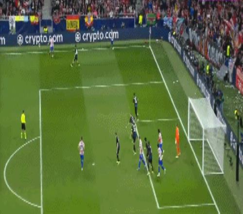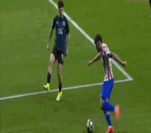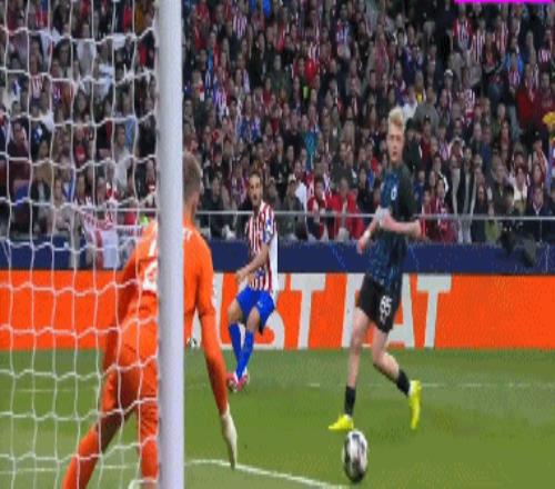 第36分钟,布鲁日角球时机,奥多涅斯头球顶进空门,马竞1-1布鲁日