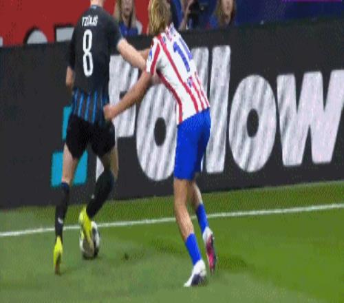 第23分钟,瑟洛特敲门,米尼奥莱黄油手将皮球漏进球门,马竞1-0布鲁日