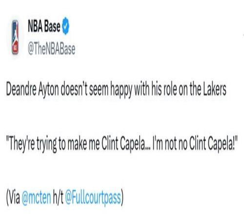 北京时间2月26日 ,ESPN的湖人记者McMenamin撰文谈及艾顿 ,这位湖人首发中锋似乎对自己的角色并不知足。