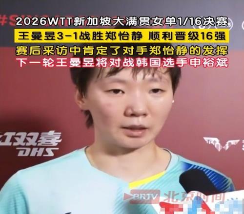 另一端是国乒名将王曼昱亮相WTT新加坡大满贯女单1/8决赛,迎战韩国新锐申裕斌,争取八强入场券。