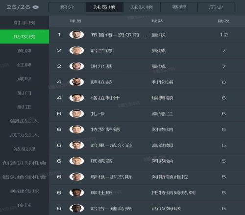 凭证统计,本赛季到现在为止,布鲁诺-费尔南德斯已经在英超当中送出了13个助攻,在英超助攻榜上遥遥领先,排在第二的是哈兰德和谢尔基,都送出了7次助攻 。