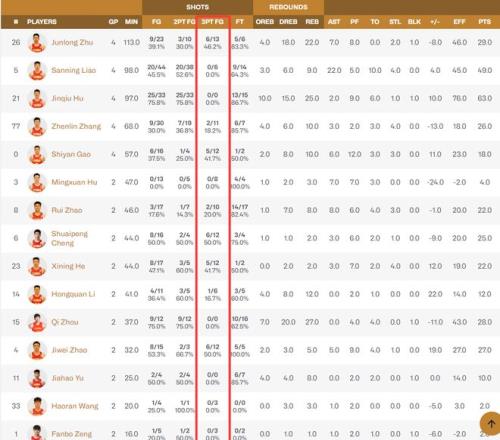 朱俊龙四场球三分13中6 ,程帅澎两场三分12中6 ,高诗岩4场三分12中5 ,贺希宁两场12中5 ,赵继伟两场12中6 ,这些球员都是三分投得很是精彩的保存 ,可贺希宁与赵继伟两人不管是产量、掷中率都在第一档 。