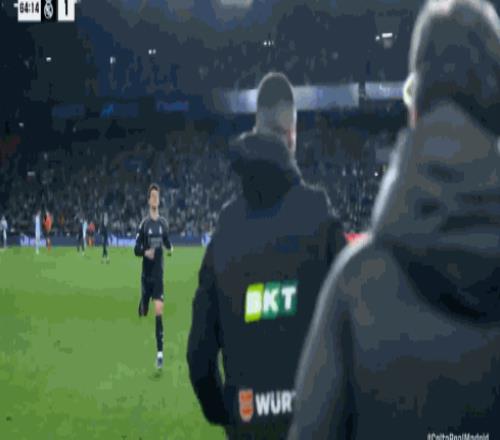 而当居莱尔在看到自己的号码泛起在换人牌上时 ,显得十分惊讶 ,他指着自己嘴型清晰地说出“换我  ?”(me?) ,随后低声嘟囔了几句 ,带着略显无奈的笑容小跑离场 。