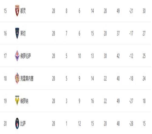 随着罗马12爆冷+米兰10国米!意甲最新积分榜:36名差6分