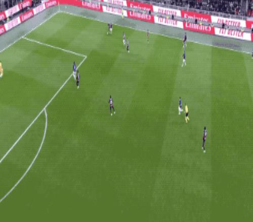 第35分钟,AC米兰打出一次教科书般的快速还击。福法纳在中场送出精准直塞,埃斯图皮尼安从左路高速插上,在禁区内小角度爆射破门,AC米兰1-0领先。这粒进球也成为全场唯一进球。