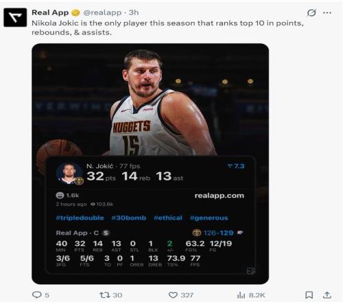 2.约基奇是同盟唯逐一位得分、篮板、助攻都是同盟前十的球员;