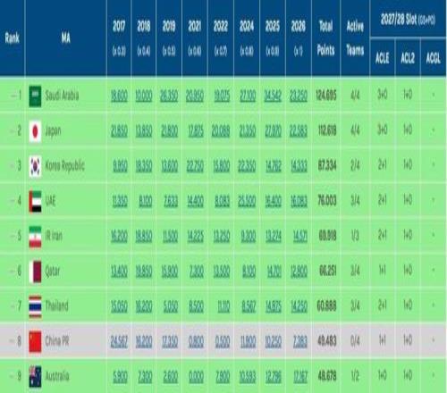 2027-28赛季,中超将继续保存三个亚冠席位,划分是一个亚冠精英联赛正赛,一个亚冠精英联赛附加赛,一个亚冠二级联赛正赛。