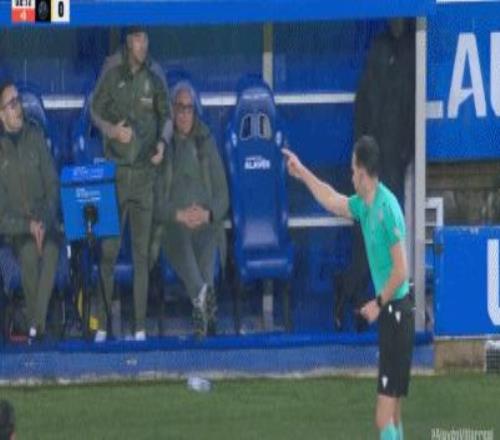 第90+5分钟,不满裁判吹罚,比利亚雷亚尔场下事情职员被罚下