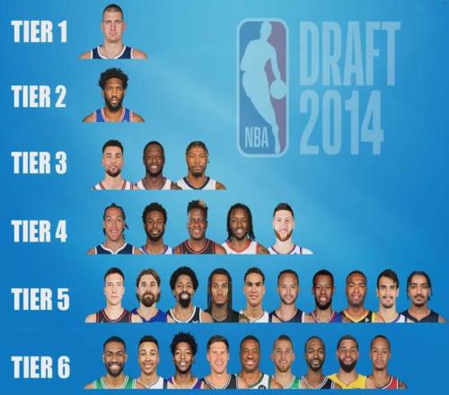 现在转头再看2014届新秀,成绩最高的不是状元维金斯,也不是榜眼贾巴里-帕克或者探花恩比德,而是第41顺位的约基奇。约先生手握3个通例赛MVP,以及一个总冠军和一个FMVP。重排2014届新秀的话,约先生独吞第一档,帕克在第六档。