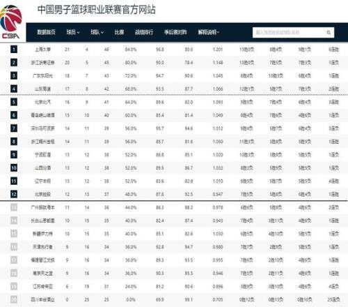 CBA排名!上海酿50分惨案,广厦输球辽宁北京连胜,广东终结连败