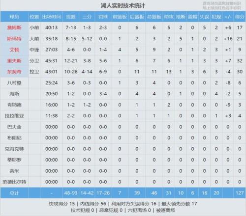 ºþÈËǰ³¡±ßÏßÇò£¬¶«ÆõÆæÃæÁټл÷´ÓÈݲ»ÆÈ£¬µ×ÏßÖоàÀëºóÑöÖÀÖУ¬Ö»Áô¸ø¾ò½ð0.5Ãë ¡£Ð¡¹þ´ïÍþ¼±åáÍÑÊÖ²»ÖУ¬ºþÈË127-125ÏÕʤ¾ò½ð ¡£Àï·ò˹32·Ö7°å6Öú¡¢¶«ÆõÆæ30·Ö11°å13Öú3ñ£»¸êµÇ27·Ö5°å2ñ¡¢Ô¼»ùÆæ24·Ö16°å14Öú5¶Ï ¡£
