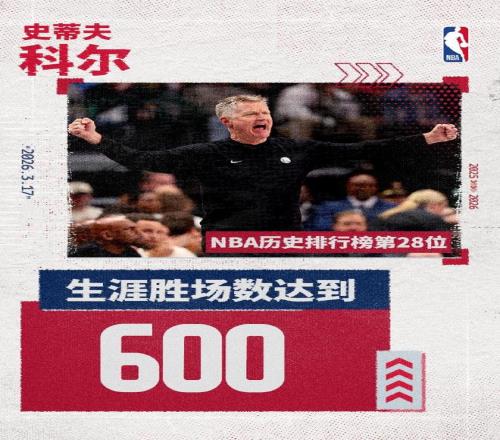 现在科尔迎来执教600胜里程碑,且均是执教勇士取得,他成为NBA历史第28位执教抵达600胜的主教练。