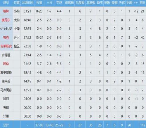 该场角逐亚历山大罚球8中7孝顺35分6板9助,杰伦布朗罚球14中13砍下34分6板7助。