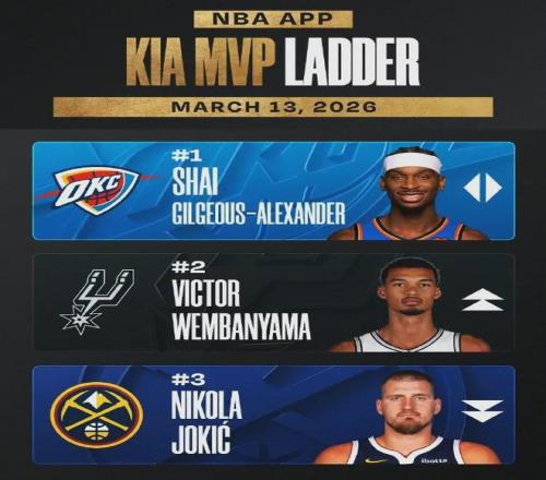 NBA官网宣布的最新一期MVP排行榜显示,亚历山大、文班亚马和约基奇排列前三,东契奇第四、坎宁安第五、米切尔第六、杰伦布朗第七、爱德华兹第八、伦纳德第九和杰伦-约翰逊第十。