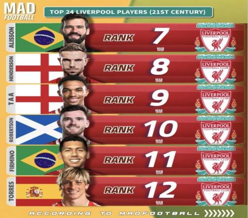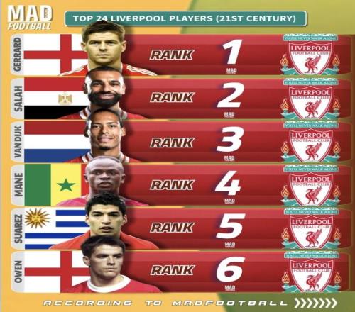 最近MADFOOTBALL整理了一份21世纪利物浦12大球员榜单。杰拉德、萨拉赫、范戴克、苏亚雷斯这些名字都在前12之内,欧文、托雷斯、阿利松也都没有缺席。真正能把这份榜单撑出话题的,不但是哪些人入选,而是同样都在安菲尔德留下过高光,有人稳稳站在最前面,有人却被压到更靠后的位置!