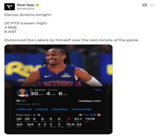 这场角逐是詹金斯的职业生涯之夜!1.30分创立生涯新高 ;