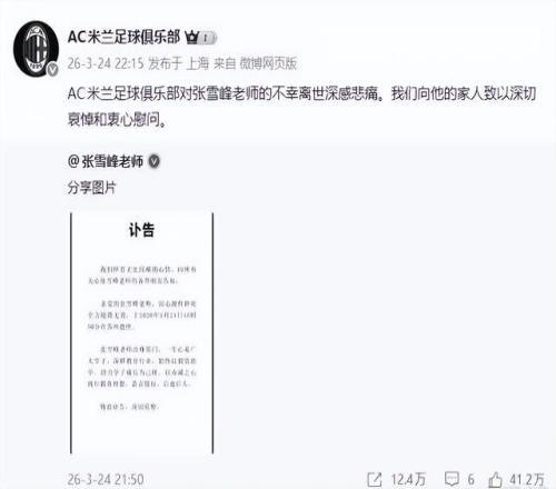 3ÔÂ24ÈÕÍíÉÏ£¬ÊÖ»úÉÏÍÆË͵ÄÒ»ÔòÐÂÎÅ£¬Ë²¼äÁîÈËßñÐê̾Ϣ¡£ÕÅÑ©·åâ§È»ÀëÊÀ£¬¿´µ½ÍøÓѸÐÉËʧȥÁËһλ½ÌÓýÒý·ÈË£¬ACÃ×À¼×ãÇò¾ãÀÖ²¿¹Ù²©·¢ÎÄÖÔÐÄοÎÊ¡£