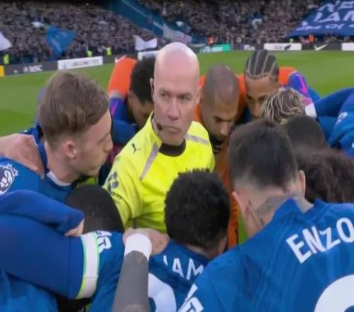 在最近对阵纽卡的角逐前,主裁判保罗-蒂尔尼泛起在球员们赛前围圈的中心位置