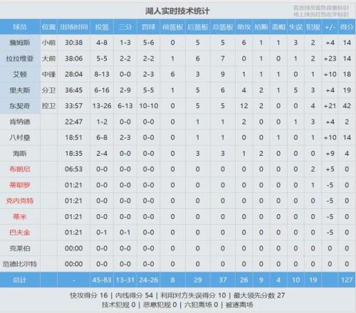 ºþÈËÖ÷³¡10Á¬Ê¤£¡ÆõÆæ42·Ö5°å12Öú0ʧÎó¡¢Àï·ò˹19·Ö6°å4Öú¡¢°¬¶Ù18·Ö9°å¡¢À­À­Î¬ÑÇ14·Ö7°å¡¢Õ²Ä·Ë¹14·Ö5°å6Öú¡£Õ²Ä·Ë¹Í¨ÀýÈü+¼¾ºóÈü×Üʤ³¡ÊýÓâÔ½¼Ö°Í¶û£¬NBAÀúÊ·µÚÒ»¡£ÆïÊ¿Õâ±ß£¬¹þµÇ17·Ö3Öú¡¢Ã×Çжû10·Ö6Öú¡£