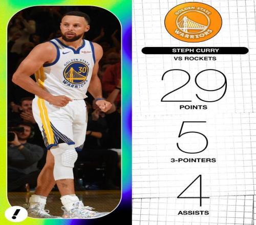 此役库里时隔27场完成复出,他替补出战26分钟,获得29分4助攻2篮板,三分线外10中5。在他登场的时间里,勇士赢了火箭12分,但在库里休息的22分钟内,勇士输掉13分。除了库里,波杰姆斯基18分,“追梦”格林7分12助攻6篮板。