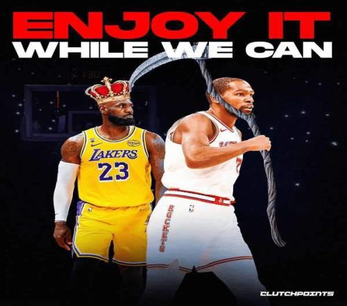 “勒布朗·詹姆斯和凯文·杜兰特上一次在季后赛交锋照旧在2018年 ,杜兰特季后赛对阵勒布朗的战绩9胜5负 ,也许这真的是詹杜的最后一次季后赛对决了 ,趁现在好好享受吧!”