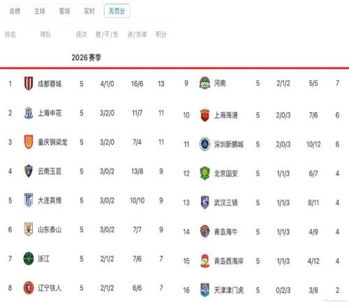 然而2026赛季,穆斯卡特引以为傲的“恐怖战术”最先失效。先是助教被挖,接着是海港被扣5分。这都罢了,开赛后球队接连不顺——球队前5轮仅取得2胜3负的战绩。