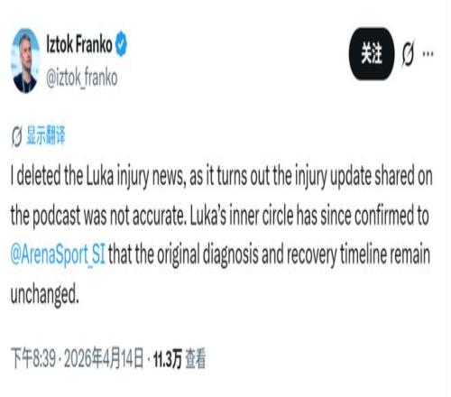 ±±¾©Ê±¼ä4ÔÂ14ÈÕ£¬Óб¨µÀ³ÆºþÈËÇòÐǶ«ÆõÆæÔÚÎ÷°àÑÀ½ÓÊܵļì²éЧ¹ûÏÔʾ£¬ËûµÄÍȽîÀ­ÉËÉËÊÆ±È×î³õÕï¶ÏµÄ¸üΪÑÏÖØ¡£¼ÇÕßIztok FrankoÏÈÊÇת·¢£¬Ëæºó¸üÕýÐÂÎÅ£º¡°ÎÒÒѾ­É¾³ýÁËÓйض«ÆõÆæÊÜÉ˵ÄÏà¹ØÐÂÎÅ£¬Ôµ¹ÊÔ­ÓÉÊÇÄǵµ²¥¿Í½ÚÄ¿ÖÐÅû¶µÄÉËÇé¸üв¢½û¾øÈ·¡£¶«ÆõÆæÕóÓªÒÑÏò¡¶ÌåÓý»­±¨¡·ArenaSport À¸Ä¿Ö¤Êµ£¬Ëû×î³õµÄÕï¶ÏЧ¹ûÓ뿵¸´Ê±¼ä±í¾ù䱬·¢×ª±ä¡£¡±