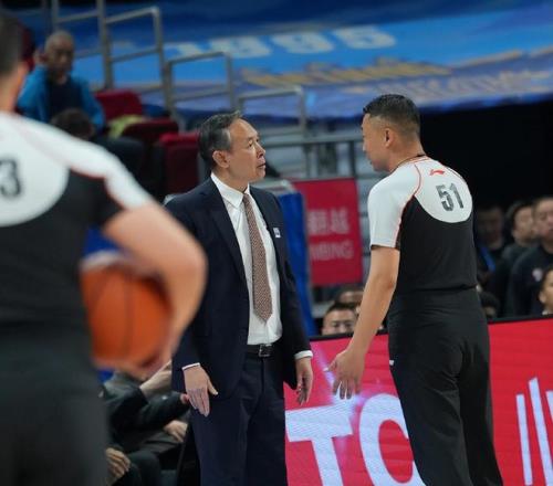 中国男篮主教练郭士强加入观战,但没有坐在VIP席、场边而是在球迷的看台。